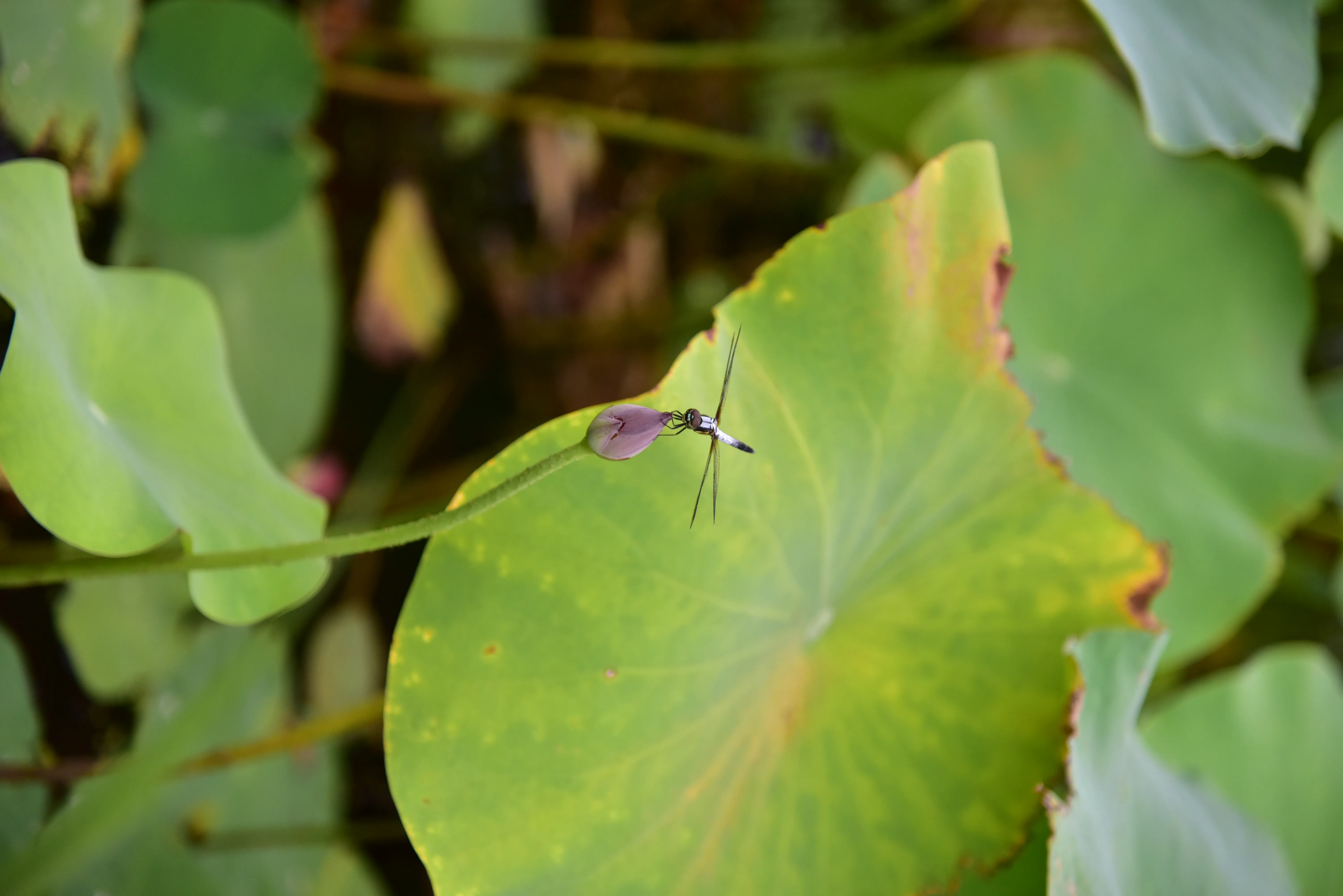 夏时不比春日,繁花似锦已然错过,只有少量月季还能用它们的五颜六色点缀一下满眼的绿色。不过夏天也有其代表的美景,那就是无边无际的荷花。“接天莲叶无穷碧,映日荷花别样红”的景色可遇而不可求,今天看到的荷花则显得“真实”,现在不是花开最盛的时节,有的已经“菡萏香销翠叶残”,有的依然“小荷才露尖尖角,早有蜻蜓立上头”。遗憾吗?也没什么可遗憾的,花并不会一直盛开,等我去欣赏。而只有我亲自来到这里,哪怕并不完美,也好过错过了春天后,又把夏天错过,终究一无所获。